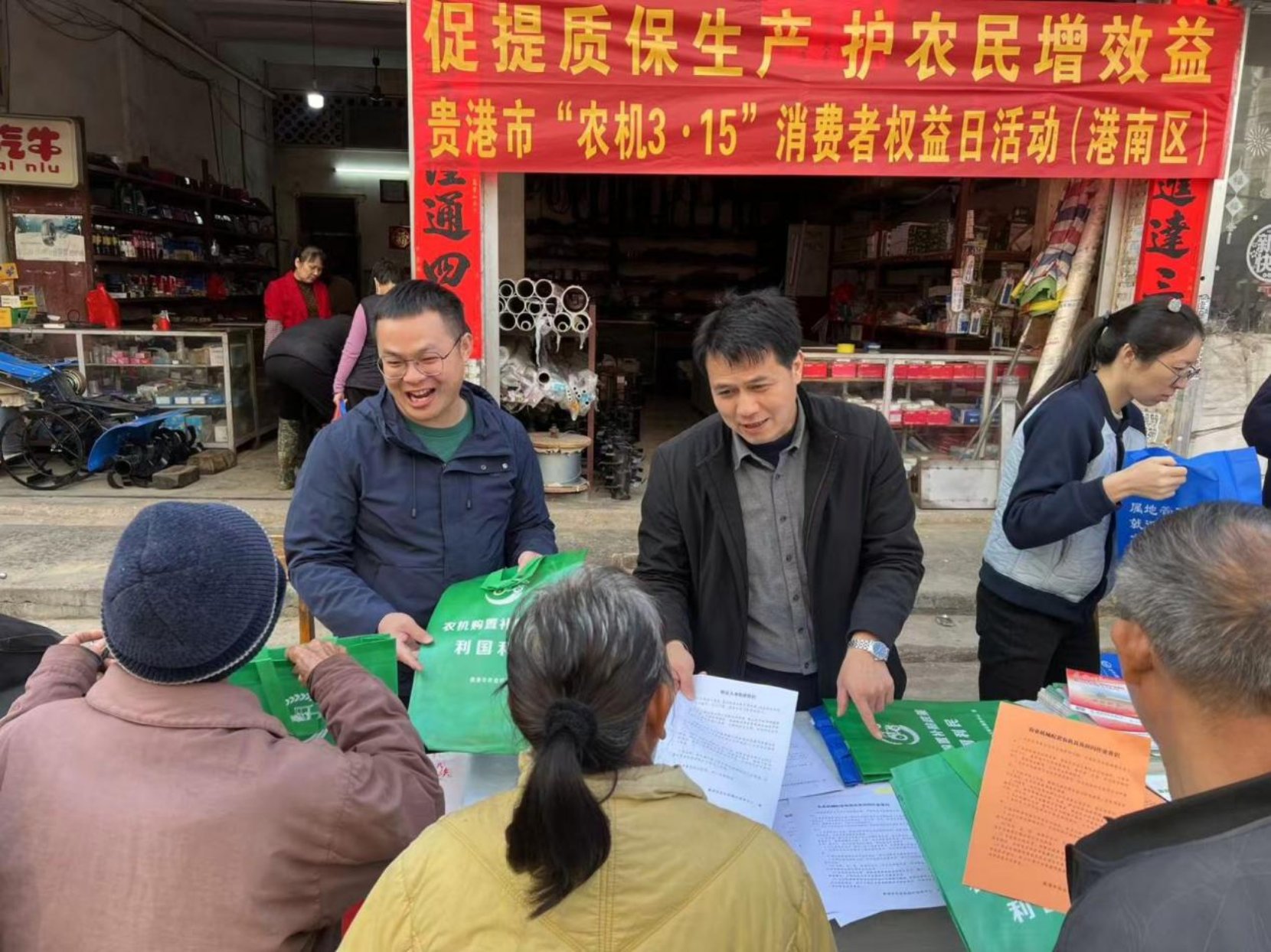 近日,广西贵港市农机中心在港南区木格镇组织开展2026年“农机3·15”消费者权益日宣传活动。本次活动以“促提质保生产 护农民增效益”为主题,贵港市农机中心、港南区农机中心及木格镇农业服务中心工作人员参加活动。