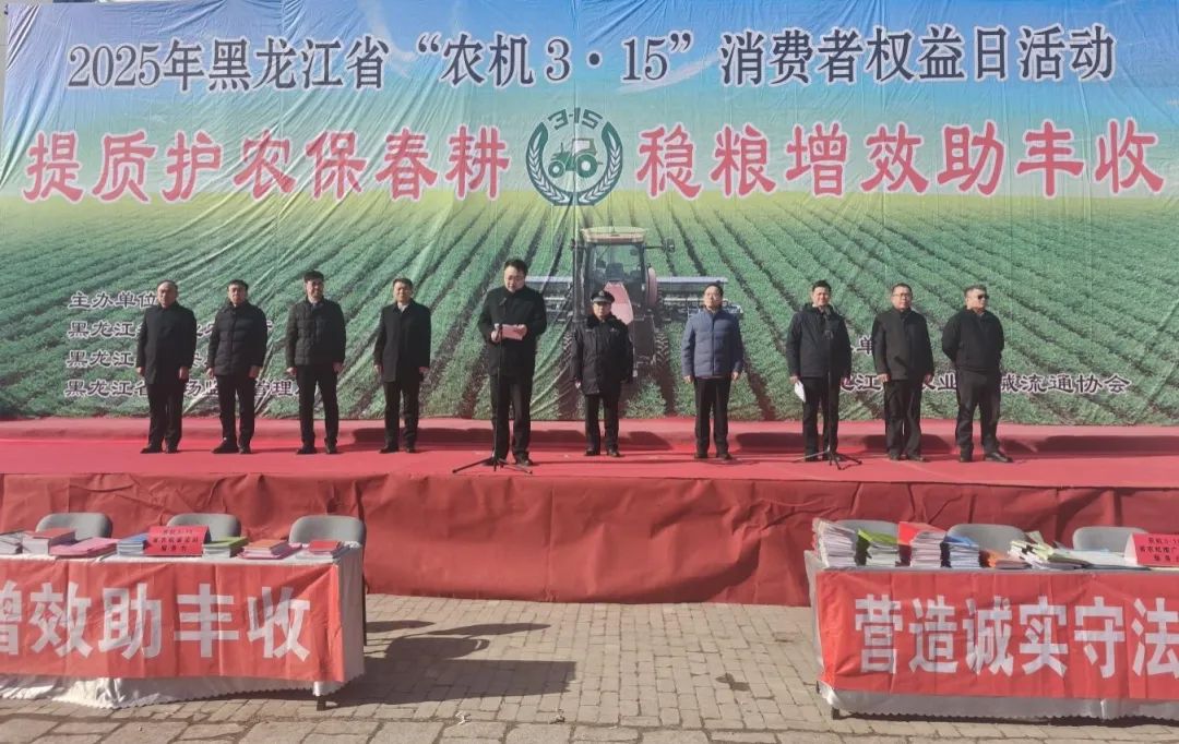3月15日,为全面贯彻中央农村工作会议精神,认真落实省委农村工作会议工作决策部署,按照农业农村部农业机械化总站和中国农业机械化协会《关于开展2025年全国“农机3·15”消费者权益日活动的通知》要求,由黑龙江省农业农村厅、省公安厅、省市场监督管理局共同主办,省农业机械流通协会协办的“提质护农保春耕,稳量增效助丰收”全省“农机3·15”消费者权益日活动启动仪式哈尔滨市隆重举行。省直相关单位业务负责同志、农户、部分农机企业代表参加本次活动。