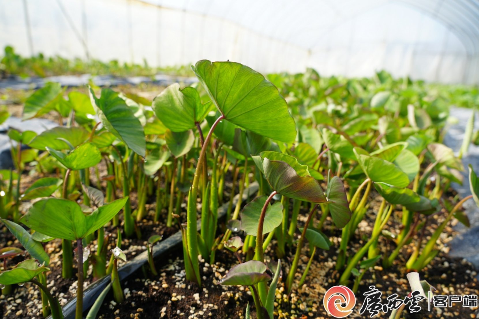 在八步区农科所育苗大棚内,一排排香芋脱毒组培苗叶片鲜亮、根系粗壮,展现出旺盛的生命力。