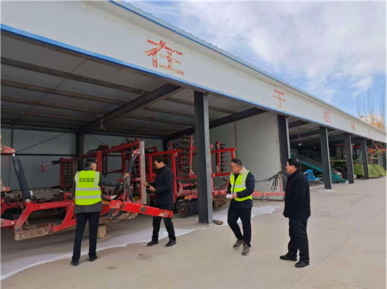 在检查农机具停放时,主要看机器零部件是否存在被低温冻裂的情形,机库棚是否存在被积雪压塌的危险,指导合作社对农机具进行冬季保养,及时更换防冻液、润滑油,清理油路、电路,确保机具始终处于良好的技术状态。