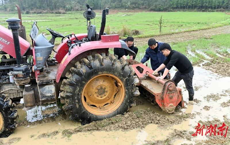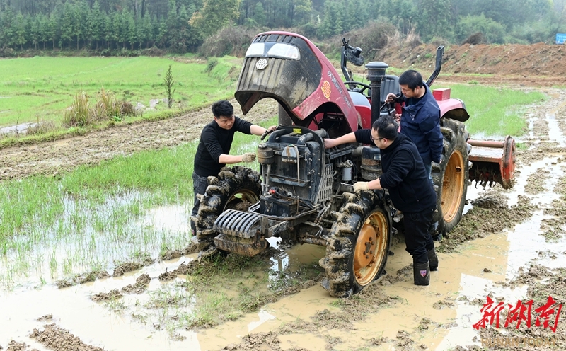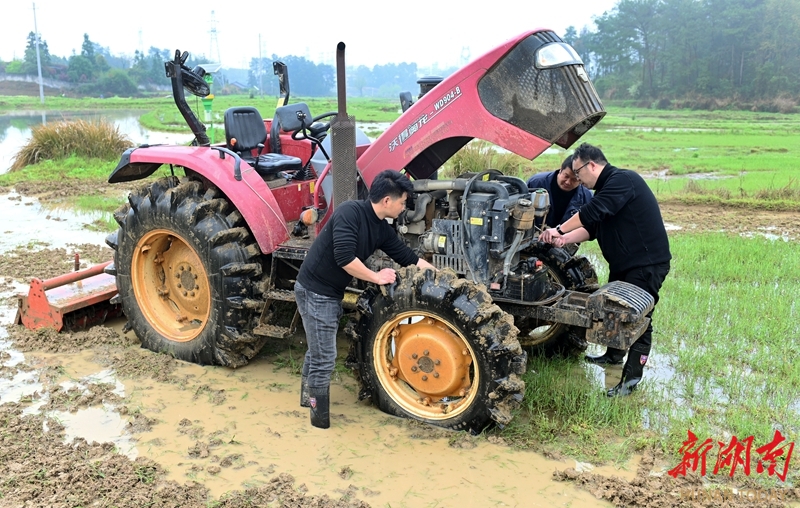 3月26日,湖南省邵阳市洞口县花古街道七里村,农机技术人员为农民义务检修耕田机。春耕时节,当地组建农机服务小分队,深入田间地头和农户家中,免费提供农机检修服务,及时解决农民在农机操作中遇到的技术难题,为春耕生产保驾护航。