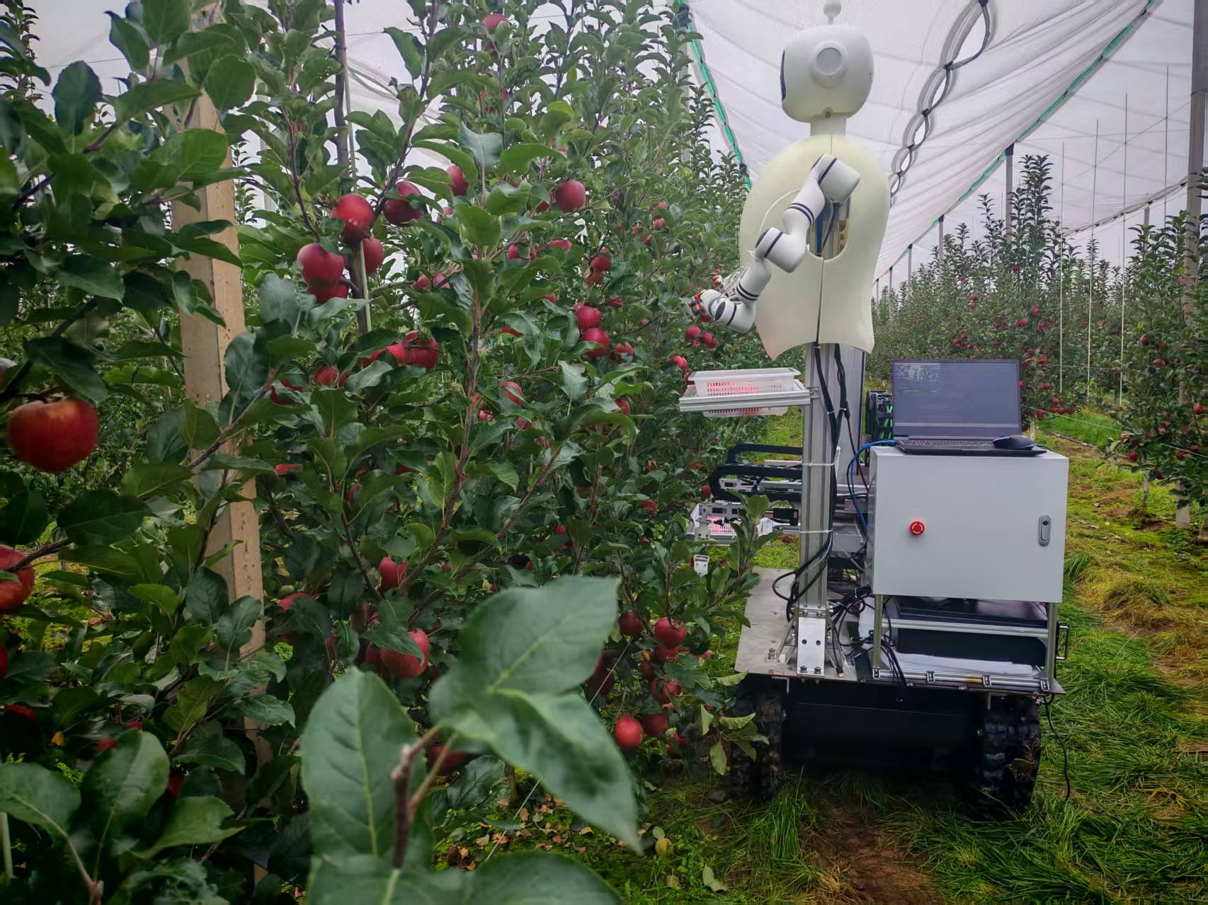 人形苹果采摘机器人作业演示