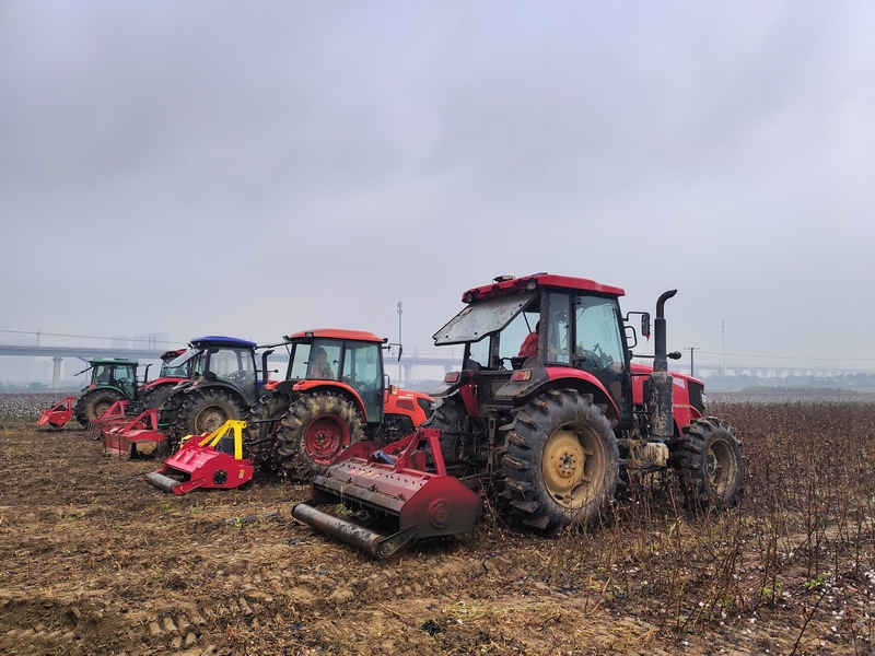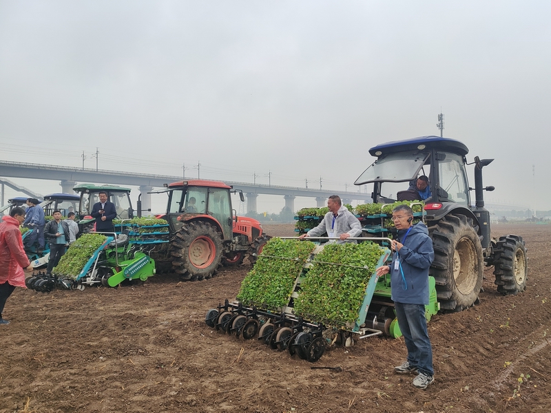 在九江市柴桑区棉油轮作示范区,10家企业的20余台套先进机具进行了集中作业演示。摘锭式棉花收获机、统收式棉花收获机、棉秆粉碎还田机依次作业,展现了棉花高效收获、秸秆处理机械化解决方案;旋耕机、油菜开沟机配套作业,油菜毯状苗育苗流水线、移栽机及联合移栽机同步展示和对比试验验证,凸显了油菜机械化种植的技术集成与抢茬抢墒优势。现场作业高效有序,吸引了众多种植大户驻足观摩。