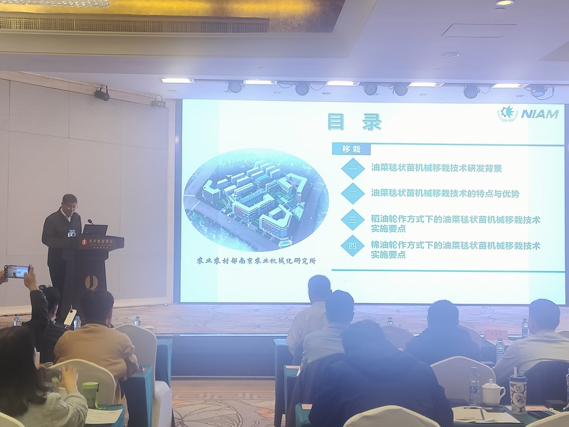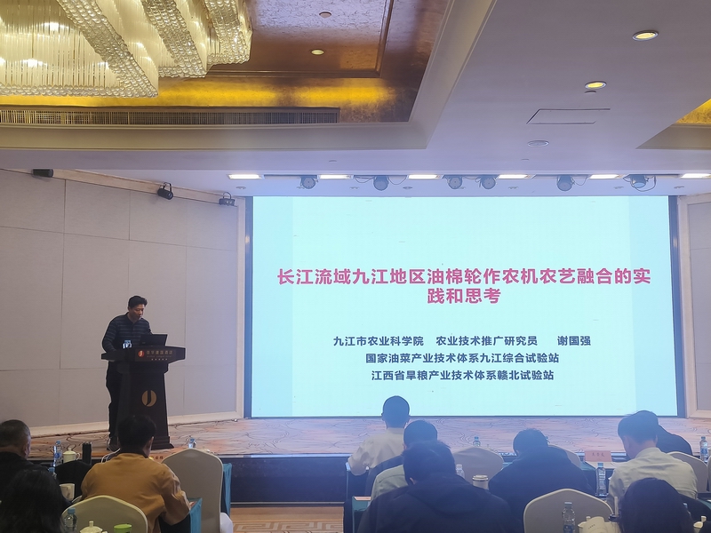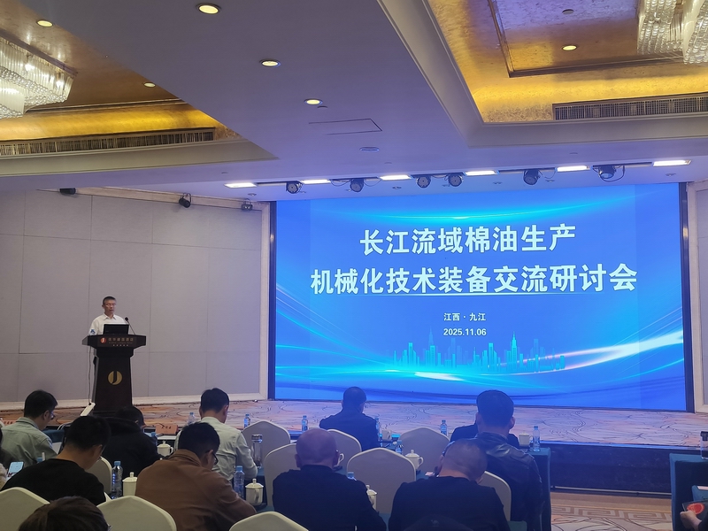 在技术交流研讨环节,石河子大学、农业农村部棉花油菜生产全程机械化专家指导组、江西省九江市农业科学院专家围绕棉花油菜生产全程机械化技术、棉油轮作农机农艺融合技术等做了专题报告。会议代表一致认为,要加快推动农机农艺深度融合,强化产学研推用协同创新,重点突破油菜育苗移栽、棉花高效采收等短板环节,推进北斗导航、智能控制等新质生产力赋能传统农业。