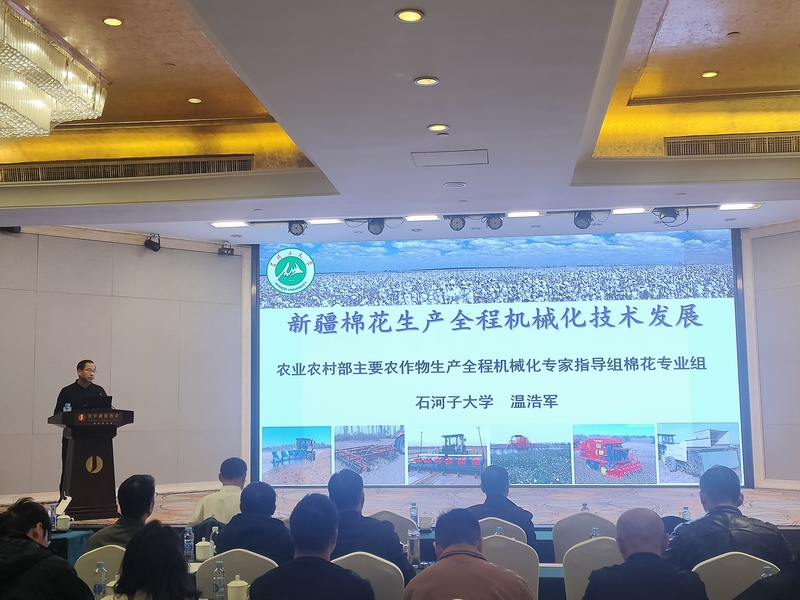 农业农村部棉花生产全程机械化专家指导组组长温浩军教授做专题报告