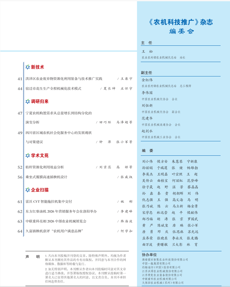 《农机科技推广》2026年第3期目录