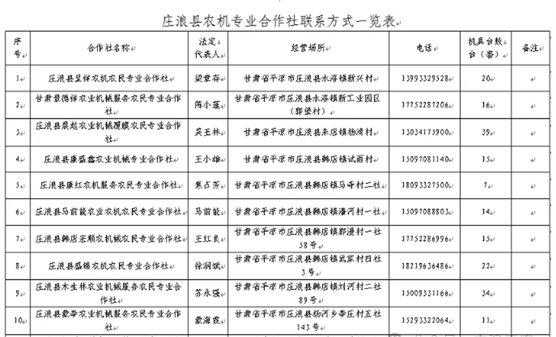 当前,正值秋收秋种关键时期,10月28日,甘肃省庄浪县农机化服务中心为切实保障群众能够抢抓有利天气,高效开展抢收抢种工作,确保农业生产时序和粮食安全,发布《关于庄浪县农机社会化服务作业联系方式的公告》,将全县农机社会化服务作业主体联系方式通过媒体对外公布。