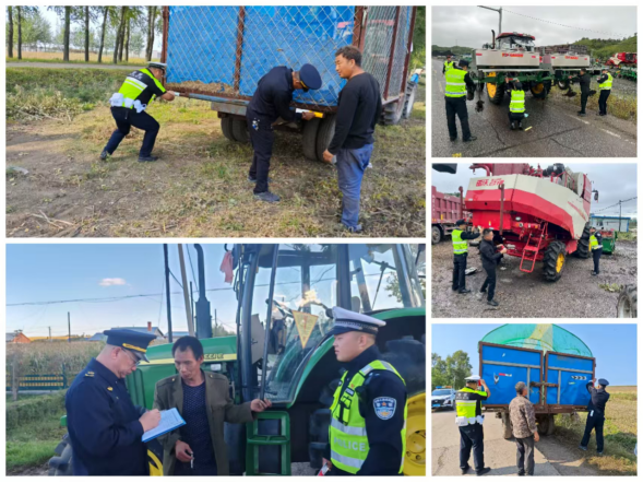 将近十月,秋收在即。农业机械使用进入旺季,农机道路交通安全隐患也进入高峰期。为保障农机安全生产,特别是秋季农机作业交通安全,黑龙江省黑河市以推动构建会商联通、隐患联治、违法联查、宣传联合、服务联动的农村道路交通安全形势,力争实现“两个下降、两不发生”(农村道路交通事故起数和死亡人数同比下降,不发生有影响的交通安全事故,不发生因执法不当印发的负面舆情)为工作目标,自9月中旬起,在全市范围内拉开了“护航秋收平安路”行动序幕,全市迅速行动,落实上级会议、文件部署要求5次,组成“护航秋收平安路”行动联合检查队伍7个,累计出动执法人员253人次,检查农业机械1044台,发现排除安全隐患33个,开展宣传活动37场,发放宣传资料4195份,悬挂农机安全宣传条幅200余条,发放粘贴反光标识14100条,“警农联合”执法检查50次,违规警告教育34人次。奠定了秋收农机安全基础。
