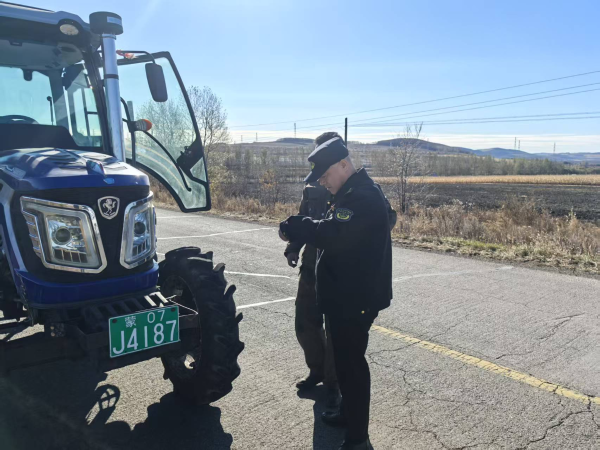 为深入贯彻落实省、市关于安全生产工作的决策部署,明确以“消除隐患、预防事故” 为核心的工作目标,聚焦农忙时节和事故高发路段,针对无牌行驶、无证驾驶、违法载人等突出风险点进行精准检查。内蒙古呼伦贝尔市鄂伦春自治旗农牧业综合行政执法大队10月21日在大杨树镇、阿里河镇齐奇岭村同步开展农机安全生产路面执法检查和农机道路驾驶安全宣传,加强农机安全管理,消除农机道路交通安全隐患,增强群众的交通安全意识。