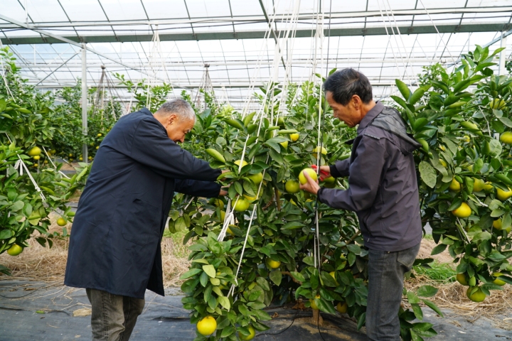 红美人、鸡尾葡萄柚、泰国红宝石青柚、明日见、甘平椪柑……富农柑橘种植示范园有了越来越多的水果品种,就像一个宝藏水果乐园,更将黄湾的柑橘采收期延长至了次年的清明节左右。据了解,闸口村富农柑橘园面积50亩,种植红美人、泰国青柚、葡萄柚等7个当家品种。