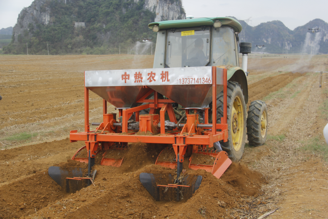 无人驾驶拖拉机配套甘蔗种植机作业演示