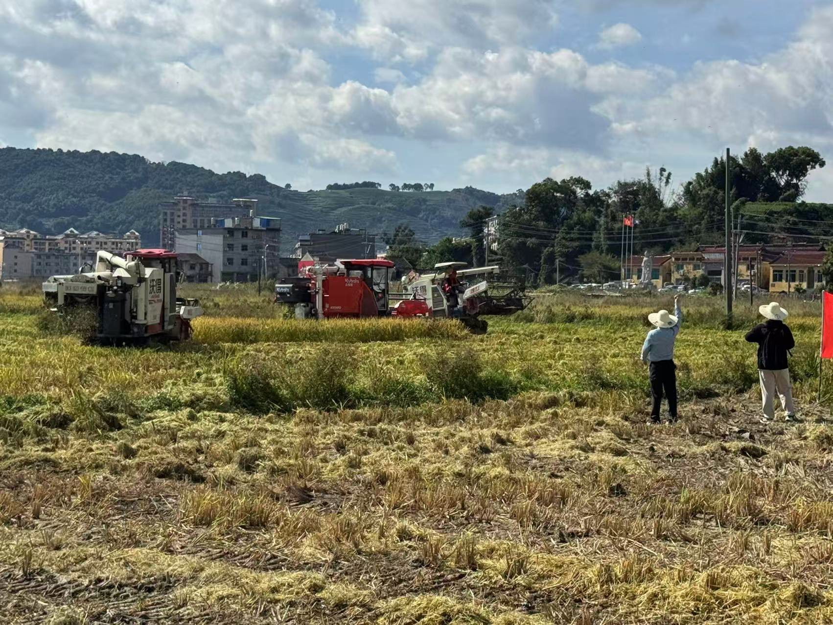 活动现场,农机手展示了联合收割机使用技巧,伴随着机器的轰鸣声,农机手们正驾驶着收割机在稻浪中来回穿梭,一茬茬水稻源源不断地卷入收割机,割稻、脱粒、吐秆、装车一气呵成,充分展现了现代农业机械的高效精准。与此同时,技术人员也在现场培训了机械化抛秧和无人机直播技术,并且向种植户详细讲解了新机具的性能特点、适用范围及操作规范等,帮助大家选好、用好农机装备。
