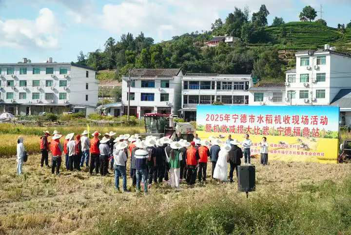 金秋时节,稻香遍野。10月31日,福建省宁德市农业机械化发展中心、福鼎市农业农村局联合举办2025年全市水稻机收现场活动暨机收减损大比武活动,当地农机手齐聚福鼎市硖门乡,同场竞技,以赛促学,交流提高水稻机械化收获的经验和技术,为守护粮食安全贡献“农机力量”。