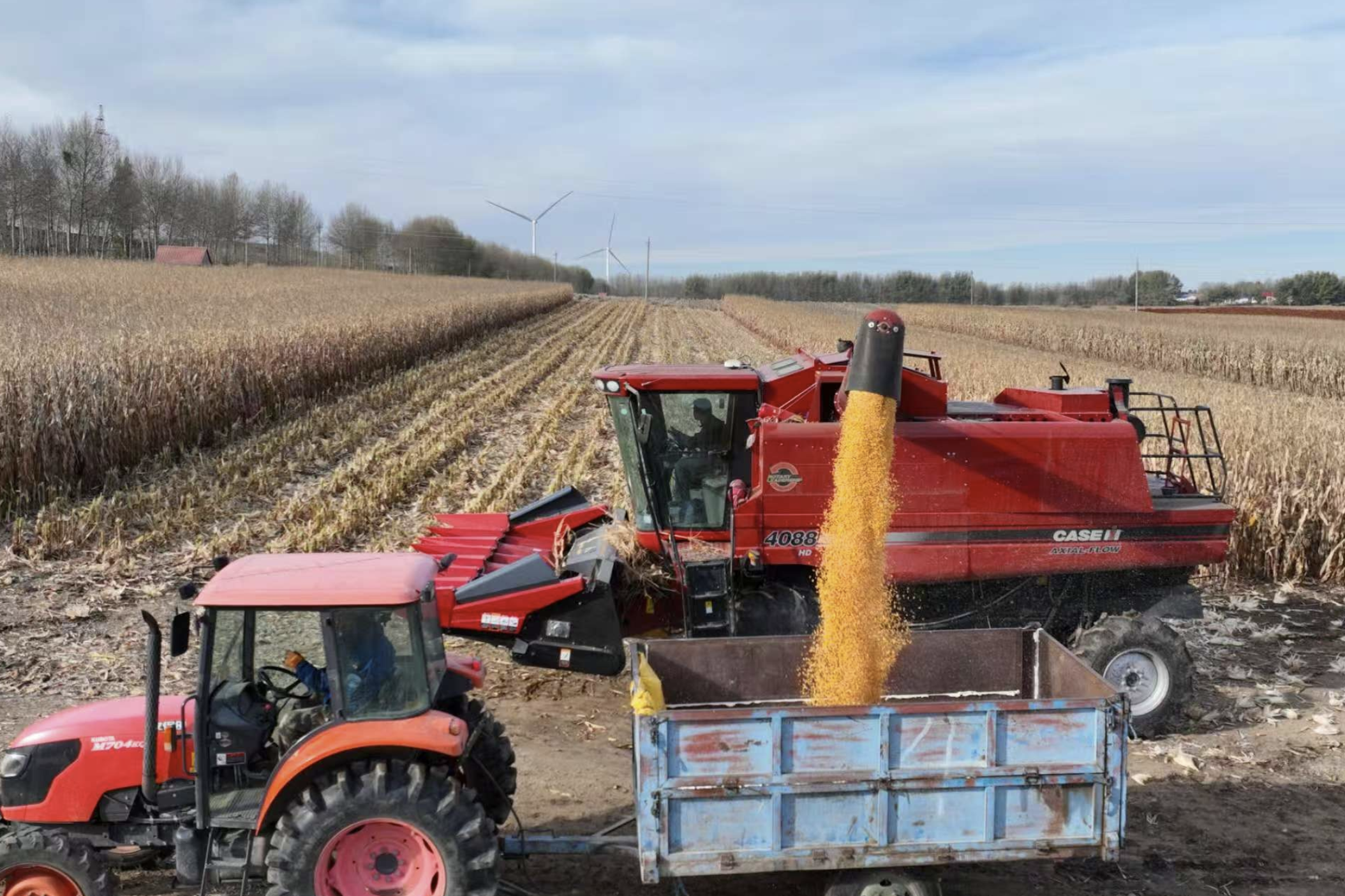 10月25日,在内蒙古兴安农垦呼和马场的试验田里,一台大型联合收割机轰鸣着驶过,金黄的玉米穗被迅速摘取,经过机内剥离、筛选,饱满的玉米籽粒如金色瀑布般倾泻而下装入运输车,这是当地正在攻关的机械化籽粒直收技术应用场景。由内蒙古农业大学主持的国家重点研发计划子课题——“春玉米、大豆轮间作低水分高质量粒收关键技术研发与集成”项目正在这里进行验收,并取得阶段性进展。该项目将“科学储粮 机收减损”贯穿全程,为破解当地玉米机械化籽粒直收难题、探索绿色高效种植模式提供了新路径。