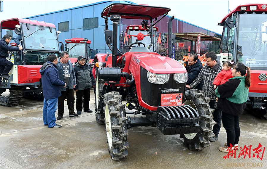 2月25日,湖南省邵阳市洞口县万利农机销售服务有限责任公司,农民在选购农机设备。近期,当地农机市场迎来销售旺季,耕田机、播种机、插秧机等农用机械需求旺盛,农民积极选购,为春耕生产做好准备。
