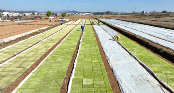 “我们从3月初开始育秧,相较于传统的人工育秧制盘,一体化秧床日均可育秧3000余盘,效率大大提高了。”楚雄州富彝种业集团有限公司种植管护人员苏柏仁介绍。截至4月1日,该基地已完成水稻育秧50000余盘,摆盘32000盘,预计4月10日全面完成育秧计划,可满足子午镇及周边2400亩土地的用秧需求。