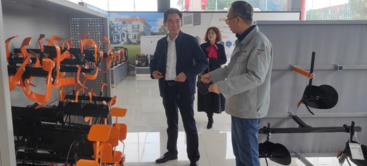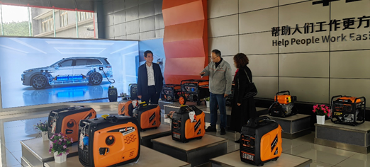 调研组在重庆华世丹机械制造有限公司副总经理李想的陪同下,全程参观了以“帮助人们工作更方便,生活更喜悦”为主题的展示厅,详细观看了“发展历程”“厂区规模”“荣誉、专利、鉴定与认证”“静音智能充电站” “多燃料变频发电机”“大功率发电机组”“应用场景”“乘坐式微耕机”“旋耕刀具”“零部件”“锄草机”等。