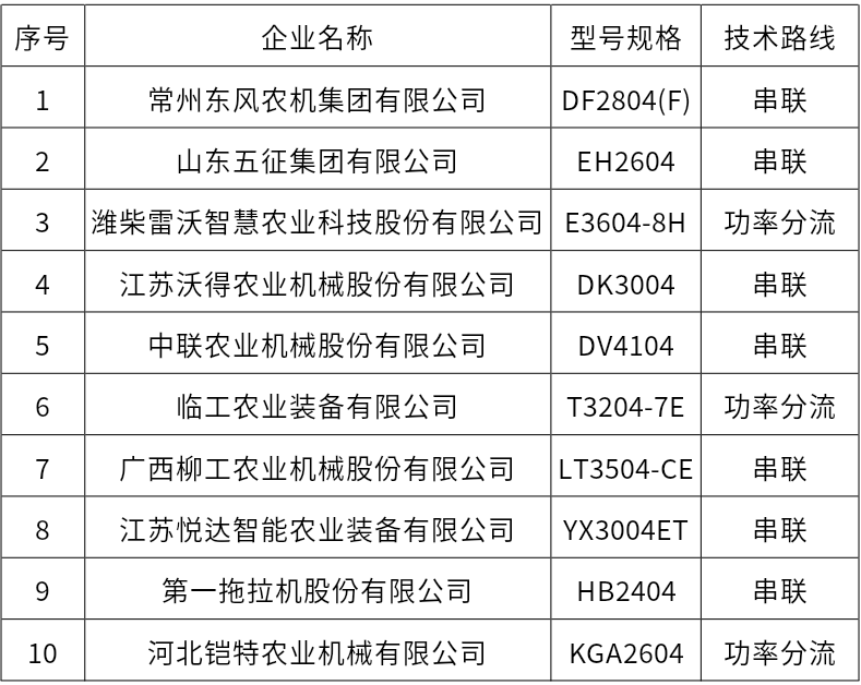 新能源混合动力拖拉机熟化定型项目生产企业和机型遴选结果公示