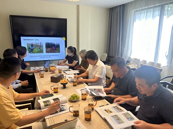 实地核查后,专家们听取了工作汇报。思农科技果园面积352亩,主要种植销售国家地理标志农产品奉贤黄桃,曾多次获得各类奖项和荣誉,如2022年获上海市地产优质黄桃品鉴“最受市民欢迎奖”和“银奖”,获评“安全优质信得过果园”;2024 年思农黄桃获评“全国名特优新农产品”等。公司实行规范化管理,包括牌证管理、机具管理、人员配置、农机作业培训等,还积极开展新技术示范应用,如宜机化栽培和机械化施肥等。此外,公司引入黄桃分选机进行果实分级处理,引入枝条粉碎机实现枝条粉碎后直接还田,展现了其在特色创新方面的成果。