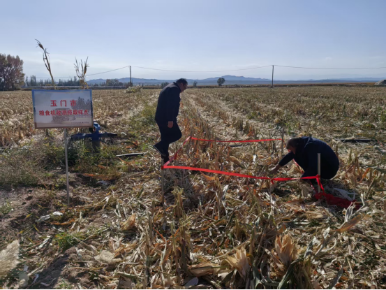 在精心遴选的两个乡镇玉米机收损失监测调查测定点,玉门市农机局工作人员按照《甘肃省2025年主要粮油作物机收损失监测调查方案》,参照省上《主要粮油作物机收损失监测调查测定方法》,认真做好收获机具作业前检查调试和驾驶员培训工作,科学规划机组作业路线,详细记录调查地块面积、联合收获机型号、机组作业状况等基本信息,采集机收损失数据,计算机收损失率,为研判形成客观、真实、准确的玉米机收损失监测报告打好铺垫。