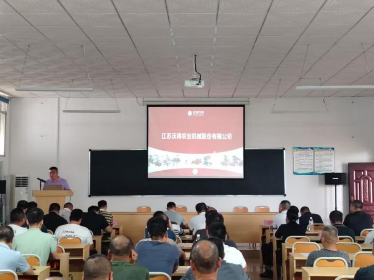 沃得农机企业代表进行机具介绍