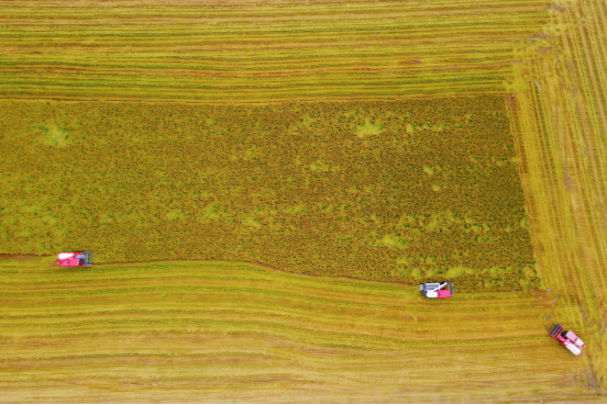近年来,南通以“四良”集成推广为抓手,全面推进粮油作物大面积单产提升,让丰收的成色更足、底色更亮。今年,全市秋粮种植面积预计452.6万亩,其中水稻274.2万亩、玉米76.1万亩、大豆89.2万亩。截至10月21日,全市已收获秋粮162.7万亩,其中水稻收割12.7万亩,丰收进程稳步推进。