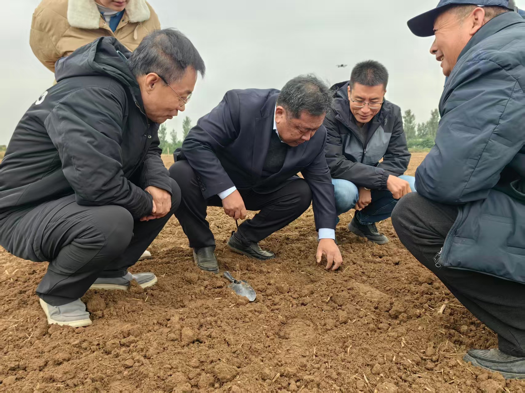 一大早,几位专家便来到地里观察土壤墒情,研讨如何根据播期调整播量、如何壮苗培育等问题。“打好异常天气下的秋收秋种攻坚战,重要的一点是发挥农机装备的作用,特别是智能化、高性能播种机。”孙世桢研究员强调。随后,一行人来到晋州市德农种植专业合作社。