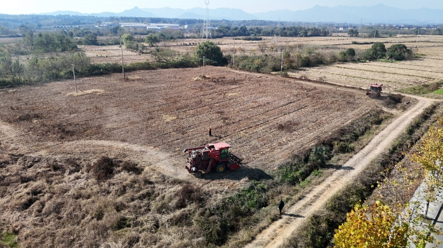 近日,浙江省湖州市安吉县天子湖镇天禹粮食专业合作社的千亩大豆进入收获期。与往年不同的是,2025年合作社首次引进3台大豆收割机,这也是安吉大豆收割的首次机械化尝试。